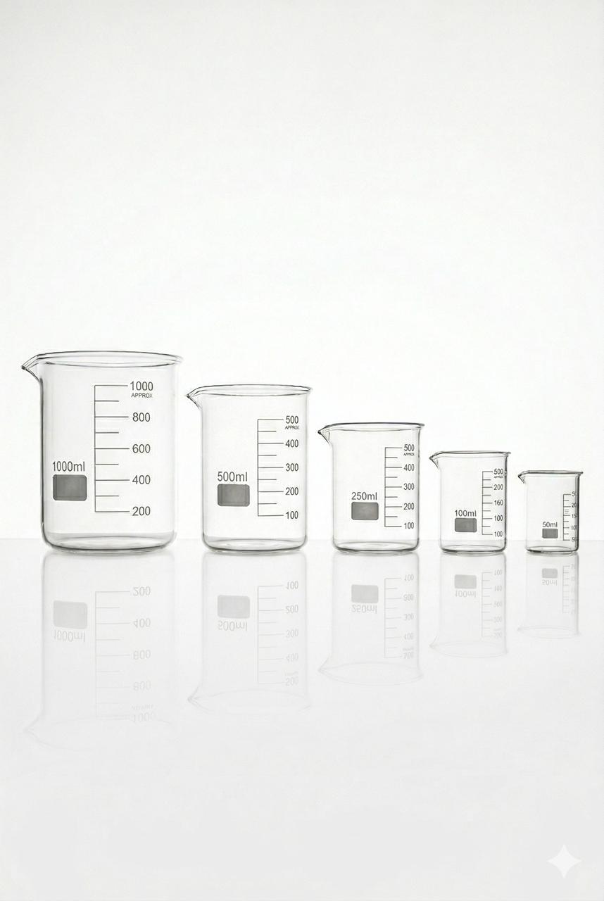 Glass beaker set for perfume mixing (50 ml / 100 ml / 250 ml / 500 ml / 1000 ml)